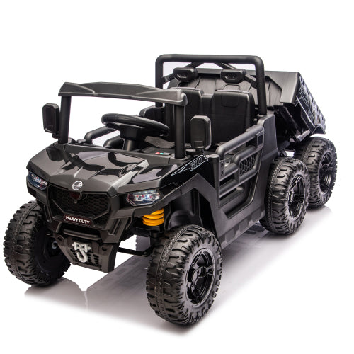24V Kids Ride On Electric Dump Truck w/Remote Control, Single Seat Ride On Toy Car with Hydraulic Dump Bed, Bluetooth Music, LED, Shock Absorbers, Electric Truck Car for Boys & Girls Ages 3–5 (Black)